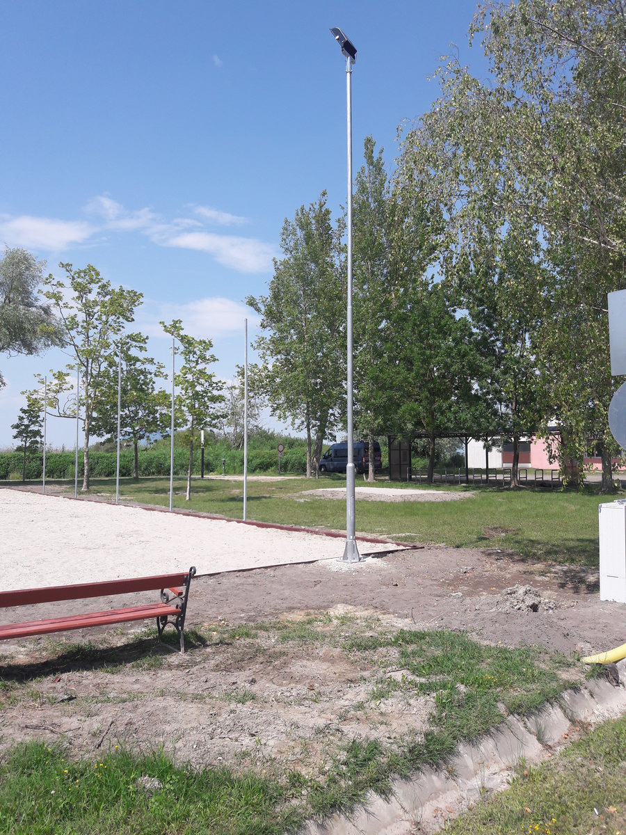 A legutóbbi, a helyi önkormányzat által kiírt strandfejlesztési kivitelezésben a BE-ÉPÍT Kft. alvállalkozójaként ránk hárult az univerzális labdajátékokra alkalmas pálya teljes építő ipari kivitelezése és az éjszakai játék lehetőséget biztosító kandeláberek felállítása és beüzemelése is.